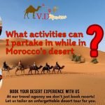 Il tempismo è la chiave per scoprire la vera magia del deserto marocchino. Anche se il deserto accoglie i visitatori tutto l’anno, l’autunno e la primavera sono le stagioni migliori, offrendo temperature miti e condizioni ideali per l’esplorazione. Evita il caldo soffocante dell’estate e preparati per notti più fresche in inverno. Ogni stagione rivela i suoi tesori, che si tratti dei fiori brillanti della primavera o della calma avvolgente dell’inverno.